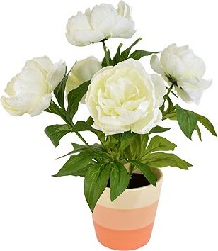 Umelý kvet DOMMIO Pivonky biele 5 kvetov v keramickom kvetináči 40 × 36 cm:Zásadné prednosti umelého kvetu DOMMIO Pivonky biele 5 kvetov v keramickom kvetináči 40 × 36 cm Umelý kvet DOMMIO prirodzene ozdobí každý interiér Získate ju spolu s kvetináčom Biela a Zelená farba Kvetina nepotrebuje vašu starostlivosť Materiálom je plast, textil a keramika Váš domov ozdobí umelý dekoračný kvet vyzerajúci ako pivonka Rozmery umelého kvetu DOMMIO sú 40 × 36 × 36 cm (V׊×H)