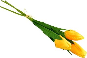 Umelý kvet DOMMIO Zväzok 3 ks tulipánov, žlté, 50 cm:Hlavné prednosti umelého kvetu DOMMIO Zväzok 3 ks tulipánov, žlté, 50 cm Umelý kvet DOMMIO prirodzene ozdobí každý interiér Môžete ju umiestniť do vázy Žltá farba Kvetina vás bude neustále tešiť Použitým materiálom je plast Nákupom získate umelý dekoračný kvet vyzerajúci ako tulipán