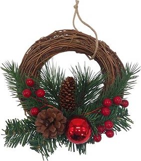 Umelé kvety na hrob – GOBA Vánoční věnec – proutěný, na dveře, 20 cm