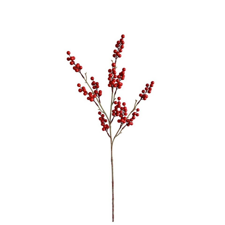 Táto dekoratívna vetvička s červenými bobuľami vnesie do vášho interiéru živý farebný akcent a sviatočnú atmosféru. Vďaka realistickému vzhľadu a detailnému spracovaniu je ideálna ako samostatná dekorácia vo váze, súčasť kvetinových aranžmánov alebo doplnok vianočných vencov a svietnikov. Sýta červená farba bobuliek kontrastuje s jemne hnedými vetvičkami, čím pôsobí prirodzene a zároveň výrazne.